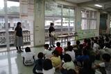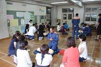 真地小学校周辺での危険箇所や危ない場面について、写真等を使いわかりやすく説明がなされました。子供たちは最後まで、教師の話を真剣に聞いていました。