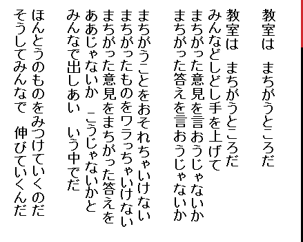 一学期で身につけた、集中する力、問題をわかろうとする力、書く力、発表・説明する力をこれからも授業、家庭学習、読書などの学習活動に生かしてください。