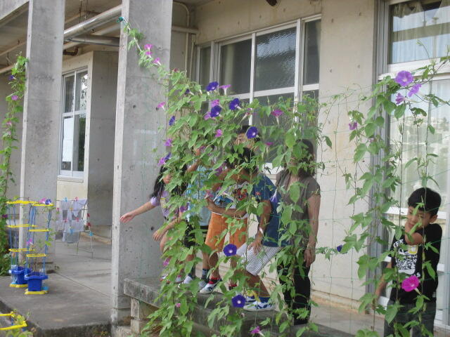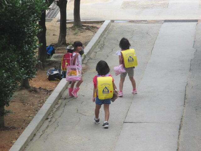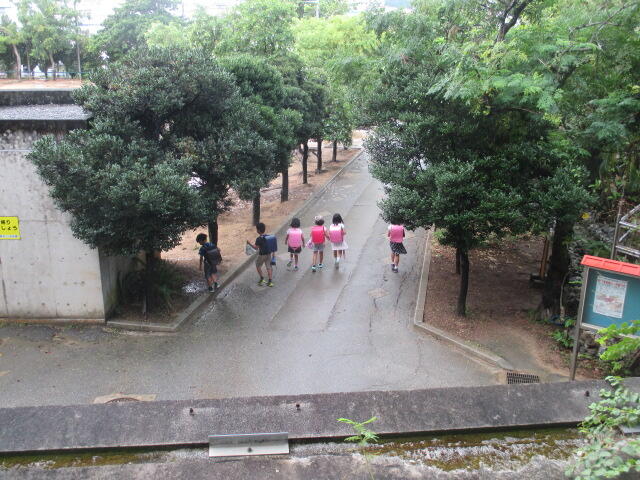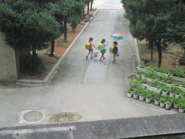 登校してくる子、朝の活動に出発する子らで子供たちが行き交い辺りは活気に満ちています。