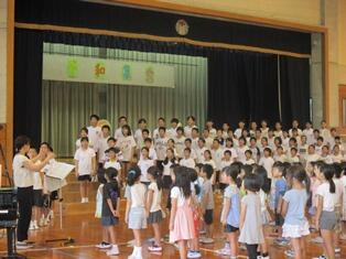 その中で特に1年生の歌声が印象に残りました。子ども達は最初の音楽朝会で、いち早く場の空気を感じ取ったのでしょう。自分たちもうまく声をださなければならないという気持ちになり、途中で歌い方をかえ、一層上手な声で歌ってくれました。