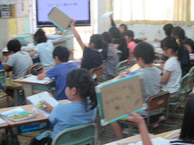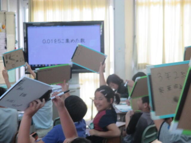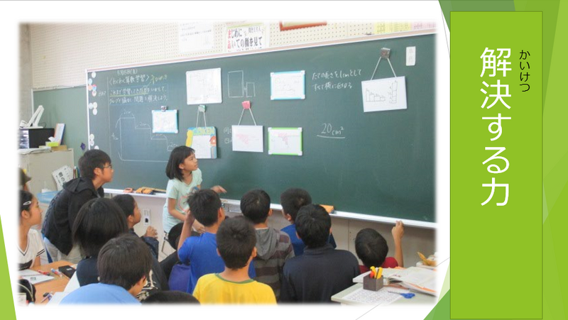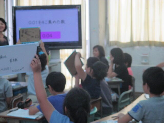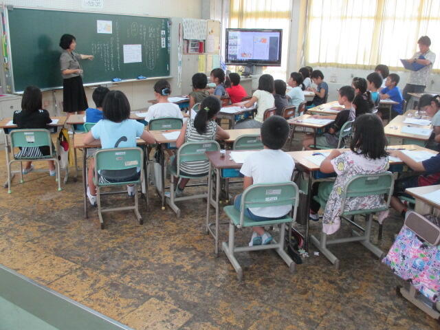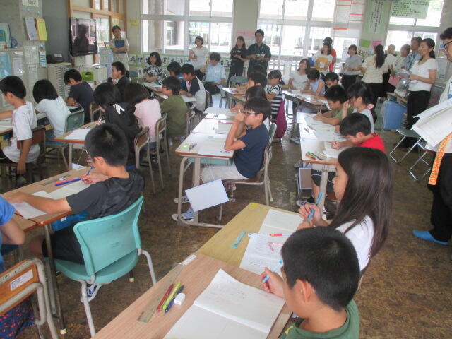授業で子供たちは、学習態度がよく集中力がありました。発表も説明も大変上手でした。一番よかったのは問いを持ち続け、能動的に学習に参加する姿勢です。他校の先生方や調査官から100個の褒め言葉をいただくことができました。
