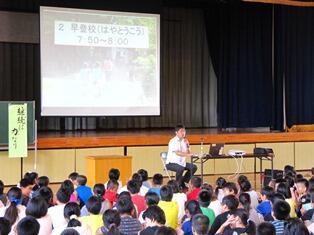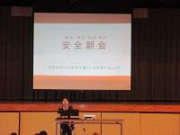 第2回となる安全朝会では学校外における車等の交通安全遵守について、安全担当の先生からお話がありました。