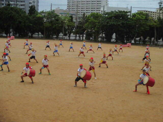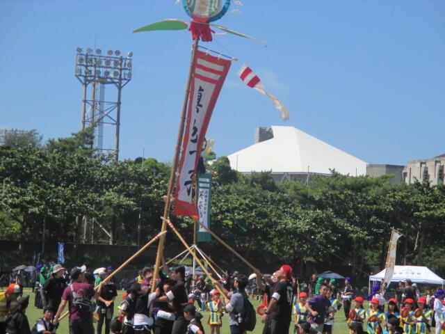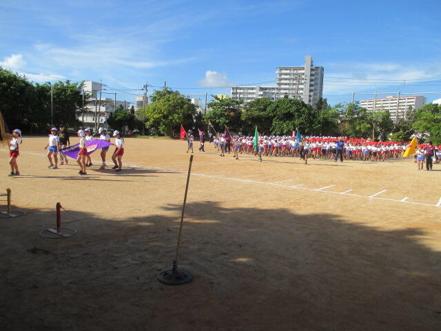 とても暑い中で、演舞、ガーエを披露しました。旗もち、チンクー隊共に大きな声を出し合っていました。準備、運搬、指導等では「美ら旗会」の皆さんに大変お世話になりました、感謝申し上げます。また応援に駆けつけてくれました保護者、教職員のみなさま本当にありがとうございました。