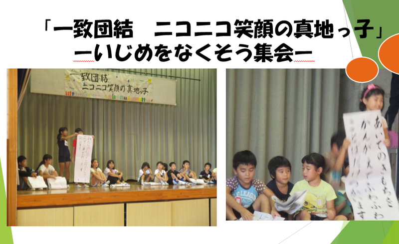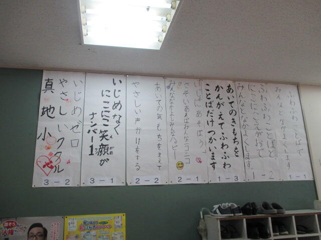 そして、人に対しての思いやり、困っている人を助ける、トイレのスリッパを並べる、学校をきれいにする、そしていじめは絶対にやらない等の、やさしい真地っ子をこれからも続けていきましょう。