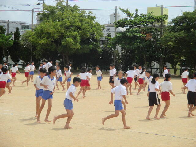 運動している一年生に、「おはようございます」とこえをかけたら、数倍返しでかえってきました。