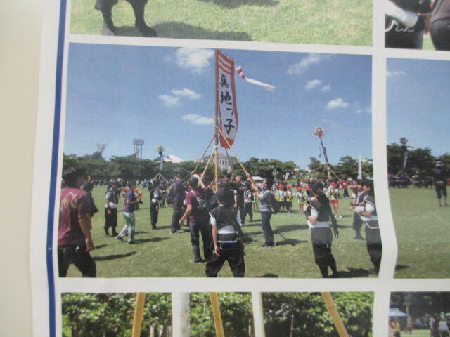 「第12回旗頭フェスタINなは」の会場では速報新聞が配布されました。その中で本校の「真地っ子」の文字の映える旗頭がしっかりと載っていました。