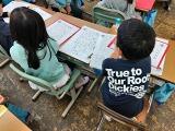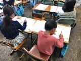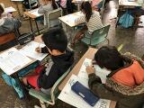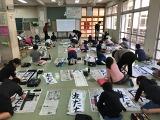 校内書き初め会が全学年で行われました。1.2学年は硬筆、3学年以上は毛筆で行いました。3学年は、東京に本部を置く「龍賓沖縄書道会」から4名の講師(島袋さん、大田さん、津嘉山さん、當間さん)を招いて指導をしていただきました。各学年「春の海」をBGMが流れる中で、一筆一筆、一画一画を丁寧に書いていました。作品は、1/17(金)の授業参観でご覧下さい。