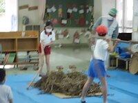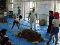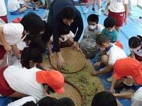 かりゆし友の会のみなさんの指導の下、「クルマン棒」を使って取り出す作業を