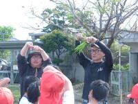 真嘉比地域の歴史や稲作との繋がり、豊年祭の意図や本校で稲作体験を行う背景など丁寧に説明を行ってくださいました。