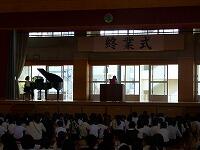 本日、1学期の終業式を行いました。児童代表のあいさつでは、縦割り班での交流や行事での思い出、教科の学びに一生懸命取り組んだことが語られました。また、「下級生の見本となれるように頑張りたい」と、2学期への意欲も述べていました。