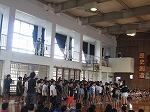 今回は学年毎に校歌を歌う校歌コンクールです。審査員の先生方(校長・教頭・教務・図書館司書・授業改善)が姿勢・発声(笑顔)・声量(どこまでとどけられるか等)の点から審査をされました。