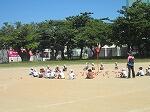 本校では今週から運動会練習が始まっています。各学年児童とも各々の種目に取り組んでいます。子ども達は、テントや日陰で休みながら水分補給をして、無理のないように取り組んでいます。写真は1年生の様子です。