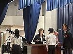 本日3校時目は離任式です。今年度19人の先生方が本校を出られます。会では校長先生からご紹介の後、児童代表のあいさつ、花束とプレゼント贈呈、先生方一人一人の旅立ちの言葉の後、全校児童でお別れ曲「ありがとう、さようなら」を先生方に贈りました。先生方、これまで本校のためにがんばってくださり、本当にありがとうございました。