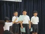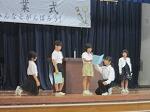 1・3年の児童代表からは、今学期あいさつを頑張ったこと、勉強を頑張ったこと、プールでの水遊びが楽しかったこと等の思い出と共に2学期の運動会にも頑張って取り組みたい、との発表がありました。