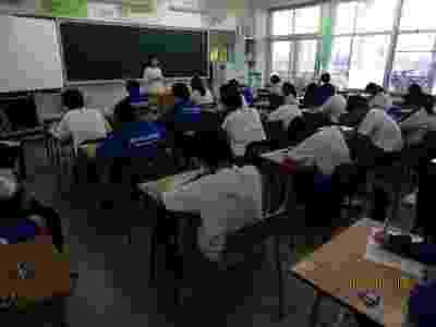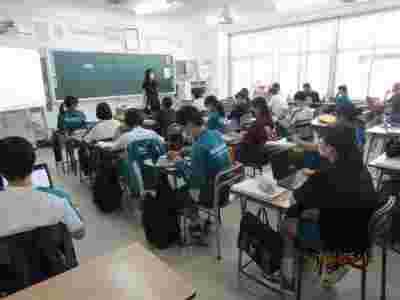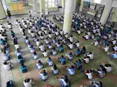 体育館がないため、「学校説明会」を多目的室で行いました。