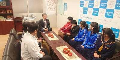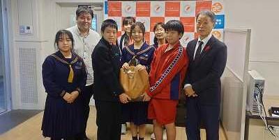 生徒会と松島中青少協会長(坂井様)が代表して届けてきました。