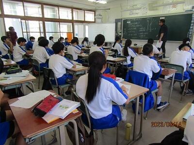 1年の数学の授業(授業者:金城史教諭)で那覇教育事務所から