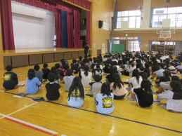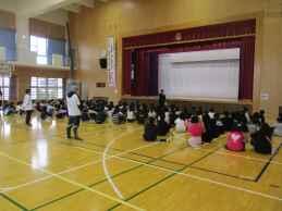 お話朝会では、校長先生から午年にちなんだクイズで楽しんだり、新年の目標についてのお話がありました。