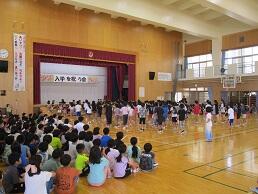 お昼休みに全児童で6年生の送出しをしました。6年生が各学年学級を回り、1~5年生がたくさんの拍手と
