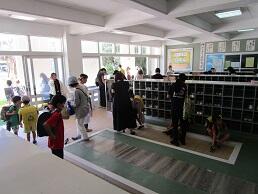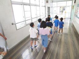 2年生が1年生の手を引いて、学校を探検しながら案内してくれました。