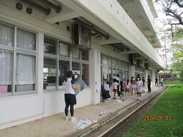 今年度最後のPTA作業が行われました。今回は校舎内の各教室で、高窓や窓のサッシ、