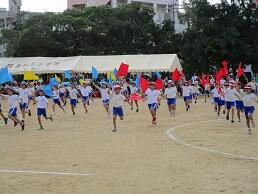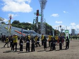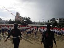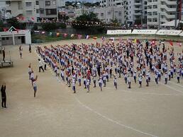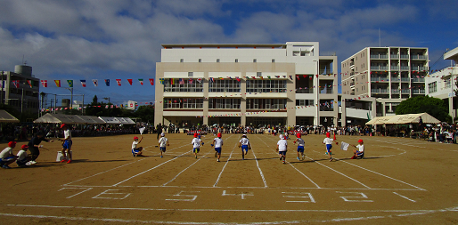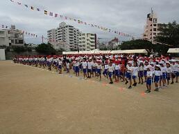 心配した雨も上がり、晴れ渡った空の下、真和志小学校運動会が開催されました。