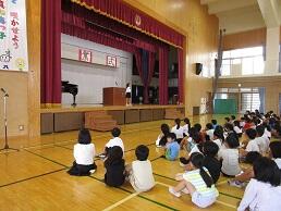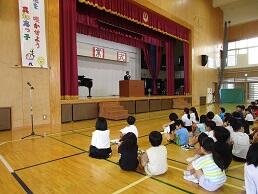 全児童を対象に低・中・高それぞれの学年で「非行防止教室」が行われました。