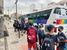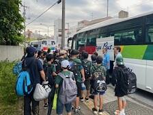 修学旅行2日目です。朝食をとって、マリン体験に向けて出発しました。