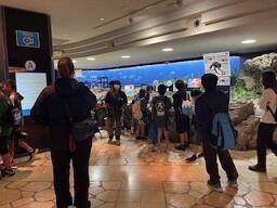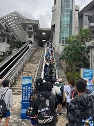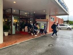 修学旅行2日目です。朝食をとって、マリン体験に向けて出発しました。