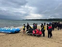風が強く、シーカヤック体験は中止になりましたが、その代わりにドラゴンボードを2回体験できました。