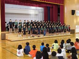 今回の音楽朝会は、11月30日(土)の那覇・浦添地区音楽発表会に参加する6年生の皆さんの合唱を聴きました。