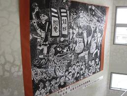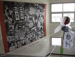 6年生が卒業記念として制作した、共同版画「ダイナミックエイサー」が掲示されています。