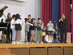 サウンドファクトリーミニさんによる「小さなジャズコンサート」が行われました。ジャズの楽しい音楽とリズムにノリノリの真和志っ子。