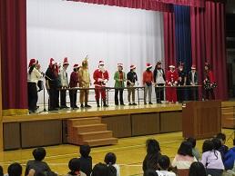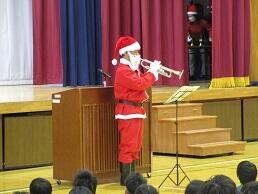 校長先生のトランペットによる「赤鼻のトナカイ」、先生方のハンドベルによる「きよしこのよる」、