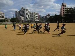 1校1運動の取り組み第3弾、「持久走大会」が今週からスタートしました。運動場を1・2年生は3周、3・4年生は4周、5・6年生は5週と各学年ごとに開催しております。自分のペースで走り切ることを目標に、寒さに負けず頑張って走っています。たくさんの応援もあって今回も盛り上がっております!チバリヨー真和志っ子!