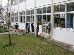 今年度最後のPTA作業が行われました。今回は校舎内の各教室で、高窓や窓のサッシ、