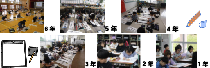 1月7日に校内書き初め会を行いました。1年生と2年生は硬筆、3年生以上は毛筆に取り組みました。
