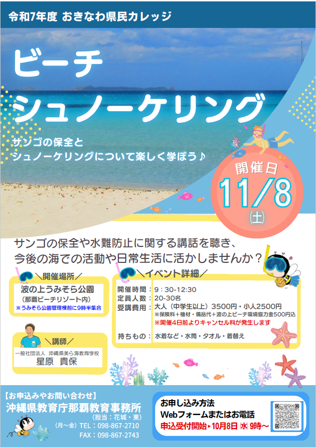◆令和7年度 おきなわ県民カレッジ「ビーチ シュノーケリング」