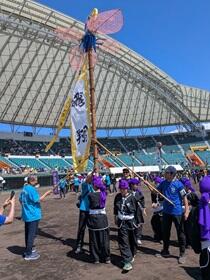 10月5日の晴れ渡った日曜日、セルラースタジアムで旗頭フェスタが開催されました。旗頭メンバーは夏休みからがんばってきた練習の成果を発揮し、素晴らしい演舞になりました。参加しためかるっ子一人一人の頑張りが最高でした!感動をありがとう!