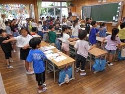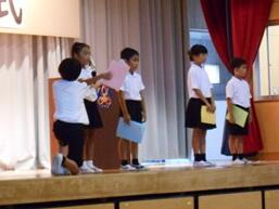 1学期終業式が行われ、校長先生のお話や代表児童の発表を聞きながら、みんなで1学期をふり返りました。1学期にお友達や先生方とたくさん学んで、大きく成長しためかるっ子、これからも銘苅小学校みんなでがんばっていきましょう!