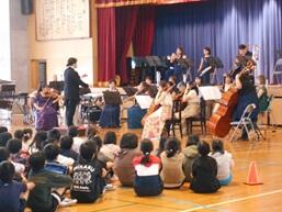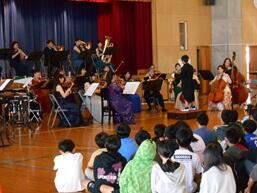 今年の音楽鑑賞会は、琉球交響楽団の皆さんによる演奏会でした。低学年、高学年に分かれて素晴らしい演奏を聴きながら、銘苅っ子もリズムに乗って楽しんでいました。また、指揮を体験したり、オーケストラの演奏で校歌を歌うなどの貴重な体験もすることができ、大満足の音楽鑑賞会になりました。