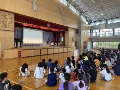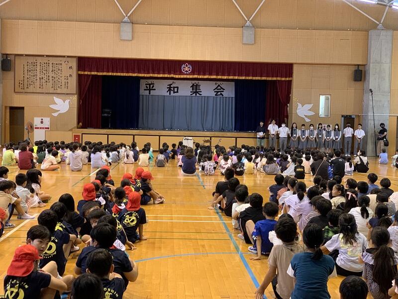 6月23日の慰霊の日を前に、平和集会が行われました。実際に悲惨な戦争を体験された方のお話を聞き、子どもたちは平和の大切さについて改めて学ぶことができました。最後に全児童が児童玄関の吹き抜けに集まり、6年生の群読、そして全員で「沖縄から平和の歌を」を歌い、平和を願いました。