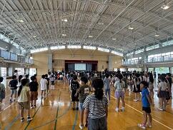 1学期終業式が行われ、校長先生のお話や代表児童の発表を聞きながら、みんなで1学期をふり返りました。1学期にお友達や先生方とたくさん学んで、大きく成長しためかるっ子、これからも銘苅小学校みんなでがんばっていきましょう!
