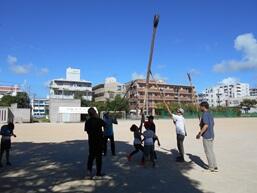 夏休みから始まった旗頭練習。10月の本番に向けて頑張っております。
