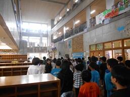 6月23日の慰霊の日を前に、平和集会が行われました。実際に悲惨な戦争を体験された方のお話を聞き、子どもたちは平和の大切さについて改めて学ぶことができました。最後に全児童が児童玄関の吹き抜けに集まり、6年生の群読、そして全員で「沖縄から平和の歌を」を歌い、平和を願いました。