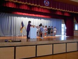今回の表彰朝会は、ゆい銘苅VBC(女子バレーボール部)さんの「那覇市バレーボール大会3位」と、新都心銘苅ジャイアンツ(野球部)さんの「真和志地区大会優勝」の表彰でした。おめでとうございます。今後もめかるっ子の活躍を期待しています!