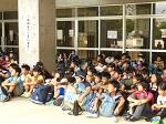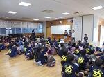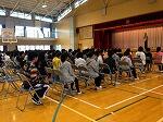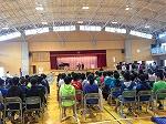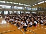 前方にいるたくさんの児童が特選を受賞したみなさんです