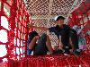 ロープを使ってやっと登れるような崖もみんなで乗りこえました。