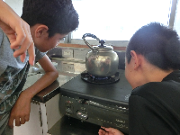 薪で火をおこし、苦しい煙の火でも、必死にがんばりました。