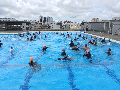 他にも、25mを自由形で泳いだり、全員でプールに流れを作って